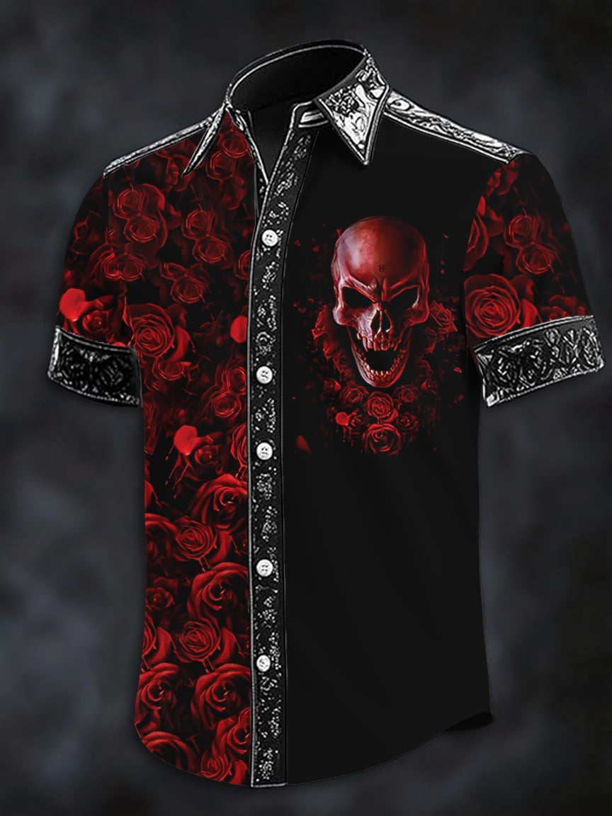Men's Dark Skull Print Casual Short Sleeve Shirt