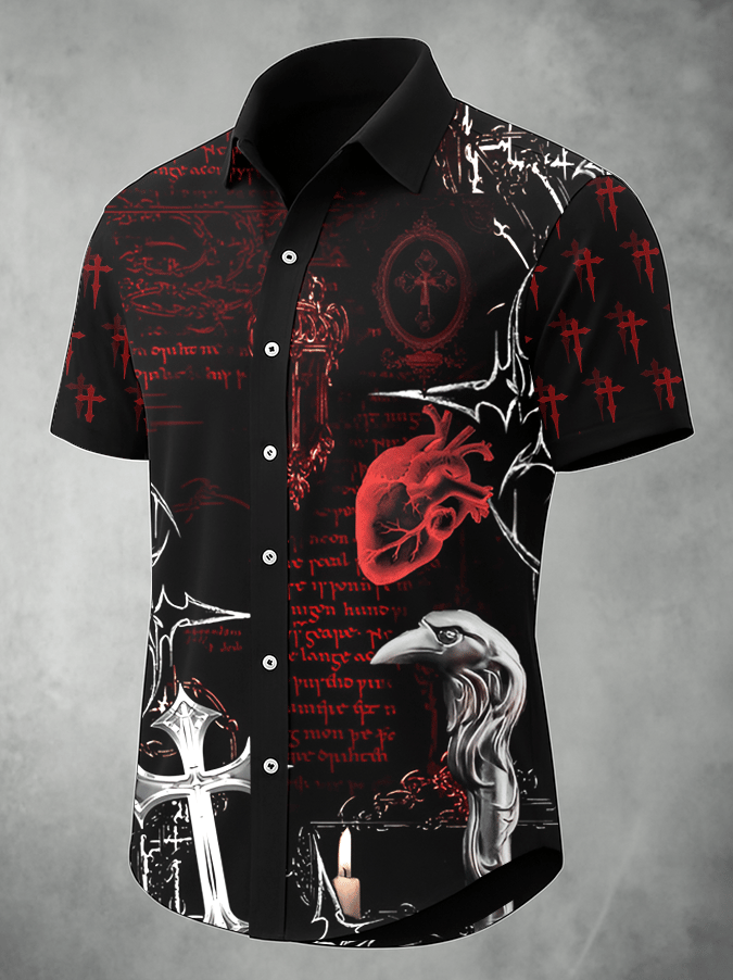 Men's Dark Skull Print Vintage Casual Shirt