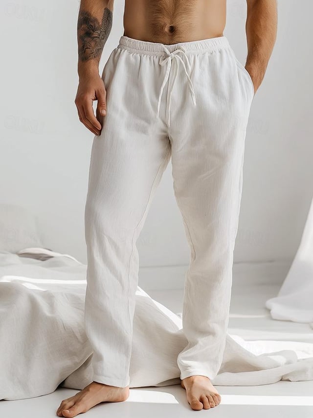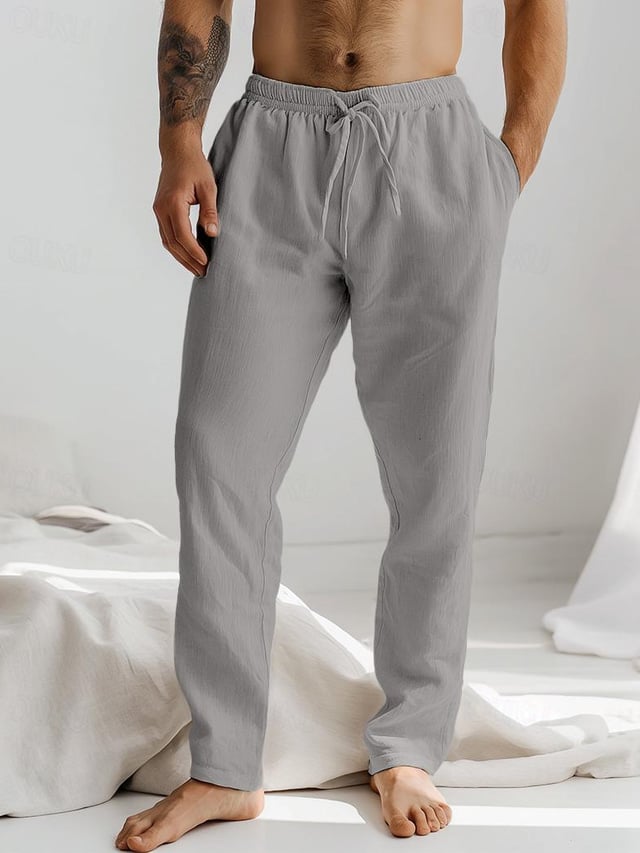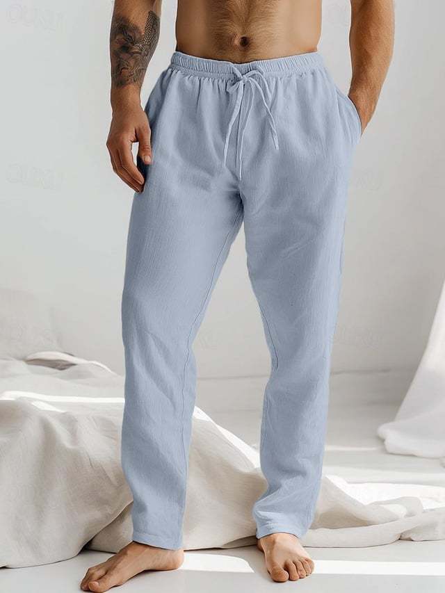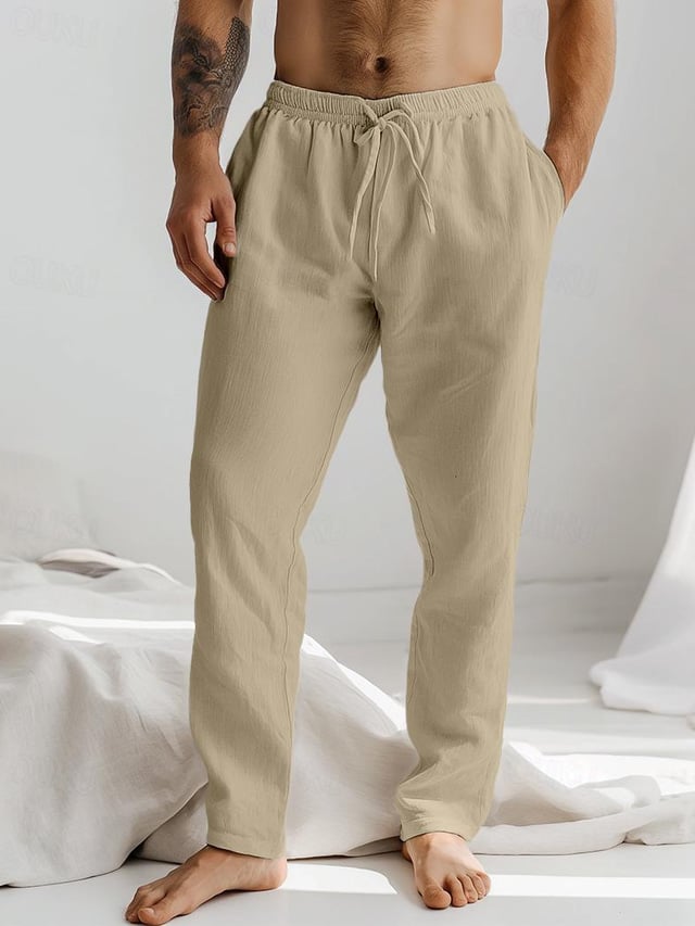 Men's Drawstring Elastic Waist Straight Comfortable And Breathable Outdoor Vacation Beach Vacation Casual Pants