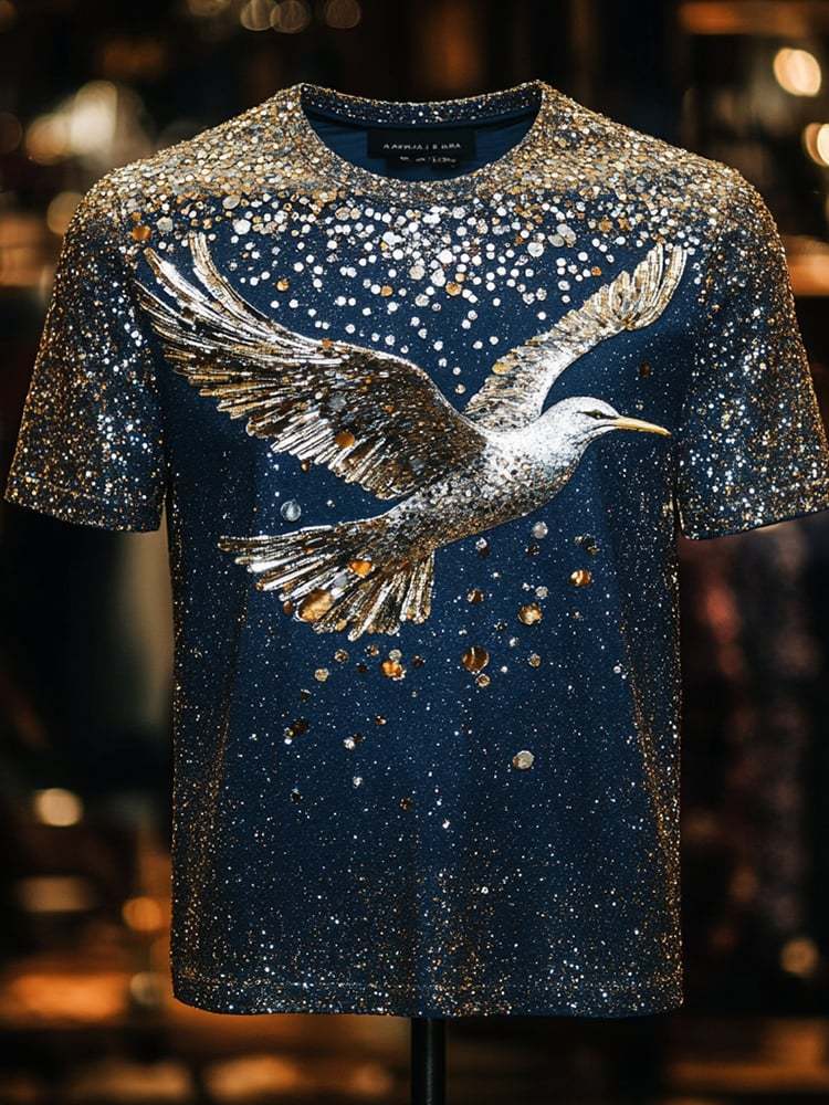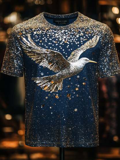 Men's Eagle Sequin Business Print Short Sleeve T-Shirt