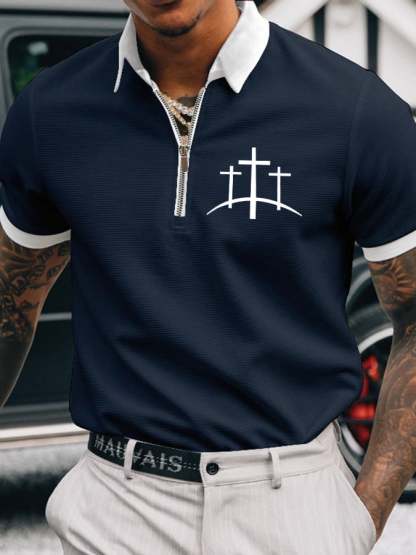 Men's Faith Cross Printed Casual Polo Shirt