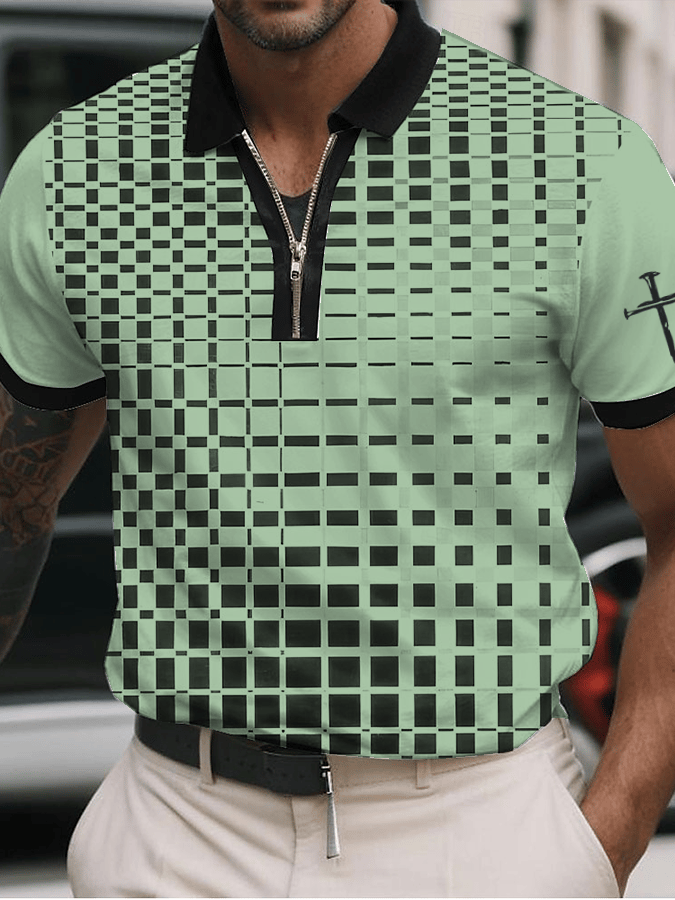 Men's Faith Printed Casual Zip-Up Polo Shirt