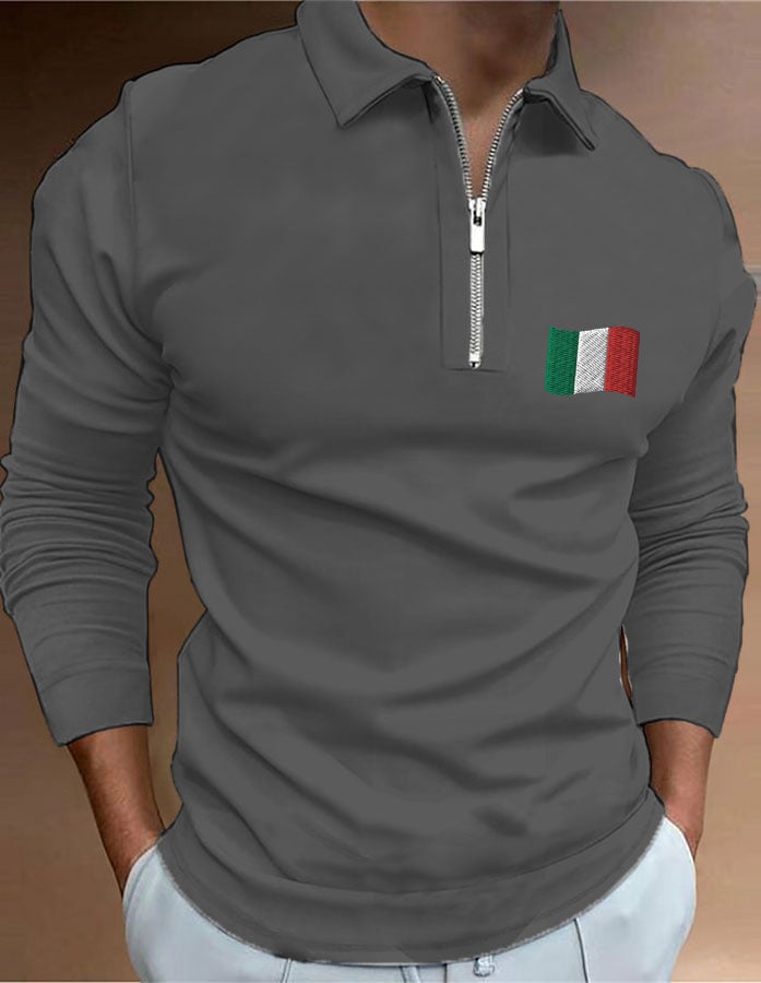 Men's "Italy" printed zip-up polo shirt