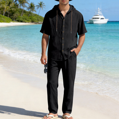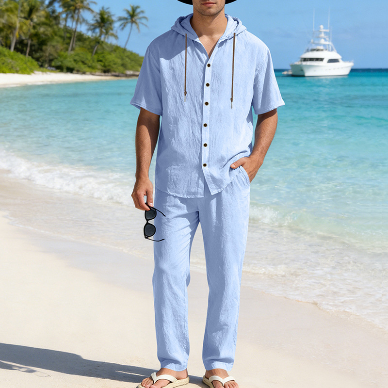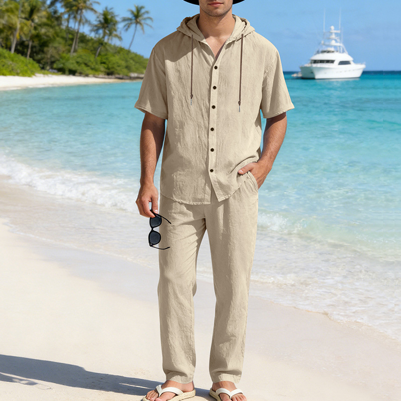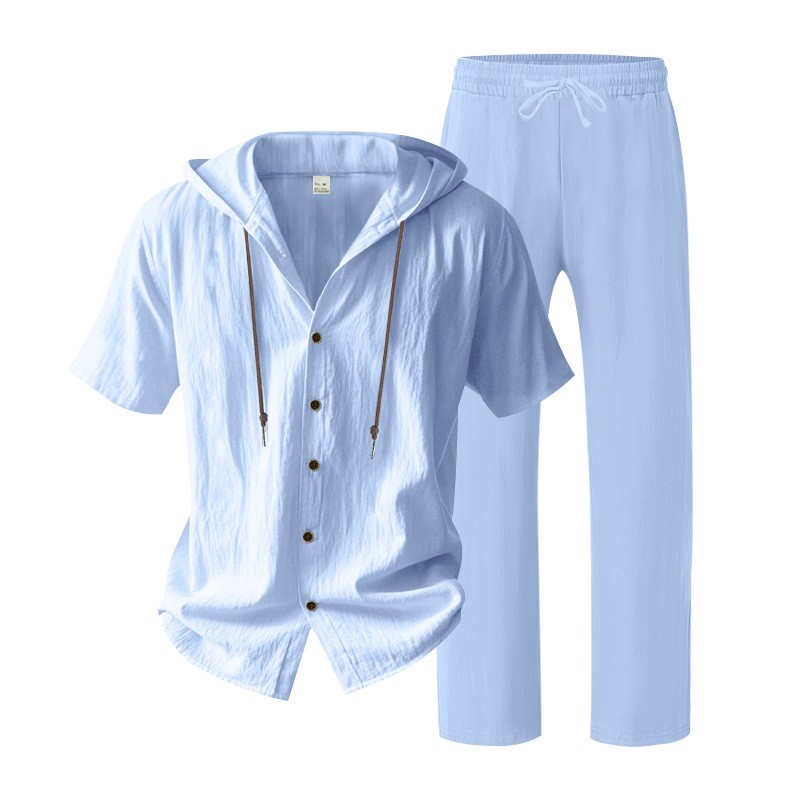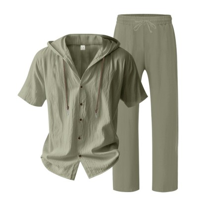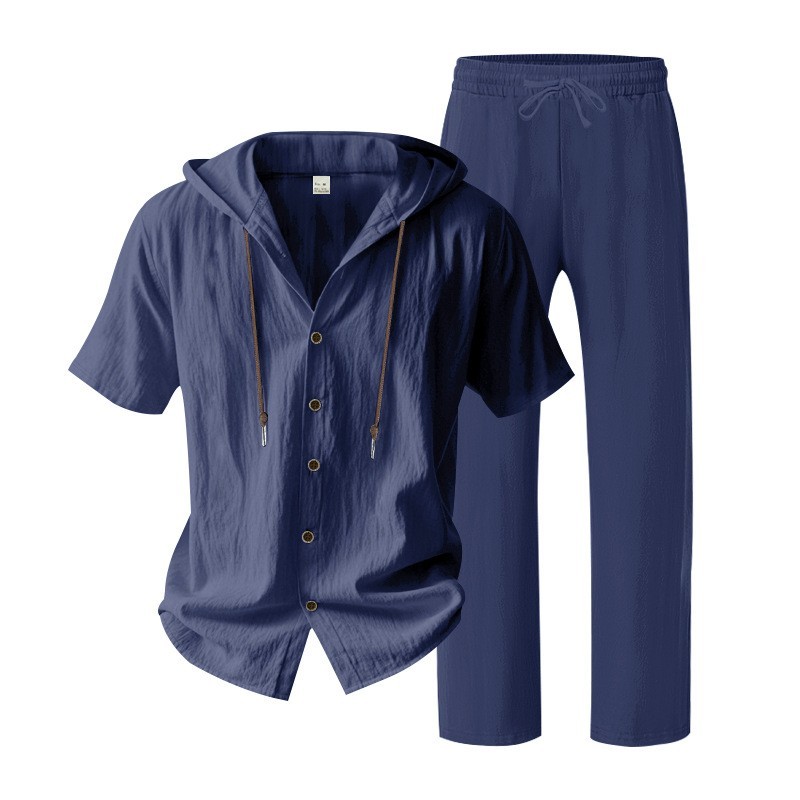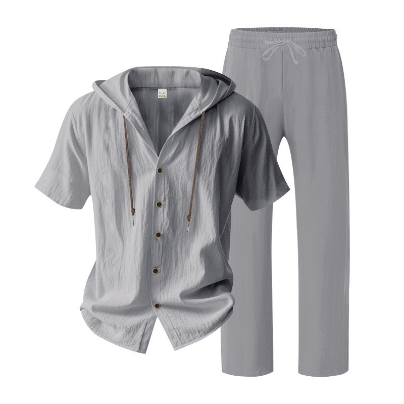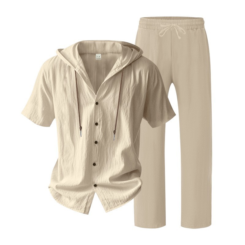 yle Type: Men's Spring/Summer Two-Piece SetSleeve Length: Short-sleevedPants Length: TrousersSeason: Spring, SummerStyle: Casual, Athletic, MinimalistFitness: LooseWashing Instructions: Dry CleanNote: This is lightweight summer clothing; please take this into consideration before purchasingPocketsComposition: 95% Linen 5% PolyesterPackaging Specifications: Crafted from premium materials, the fabric features a soft touch and excellent breathability, ensuring a comfortable wearing experience. Ideal for both athletic pursuits and casual daily wearwhether you are heading out for outdoor activities or relaxing at homethis outfit is the perfect choice for you