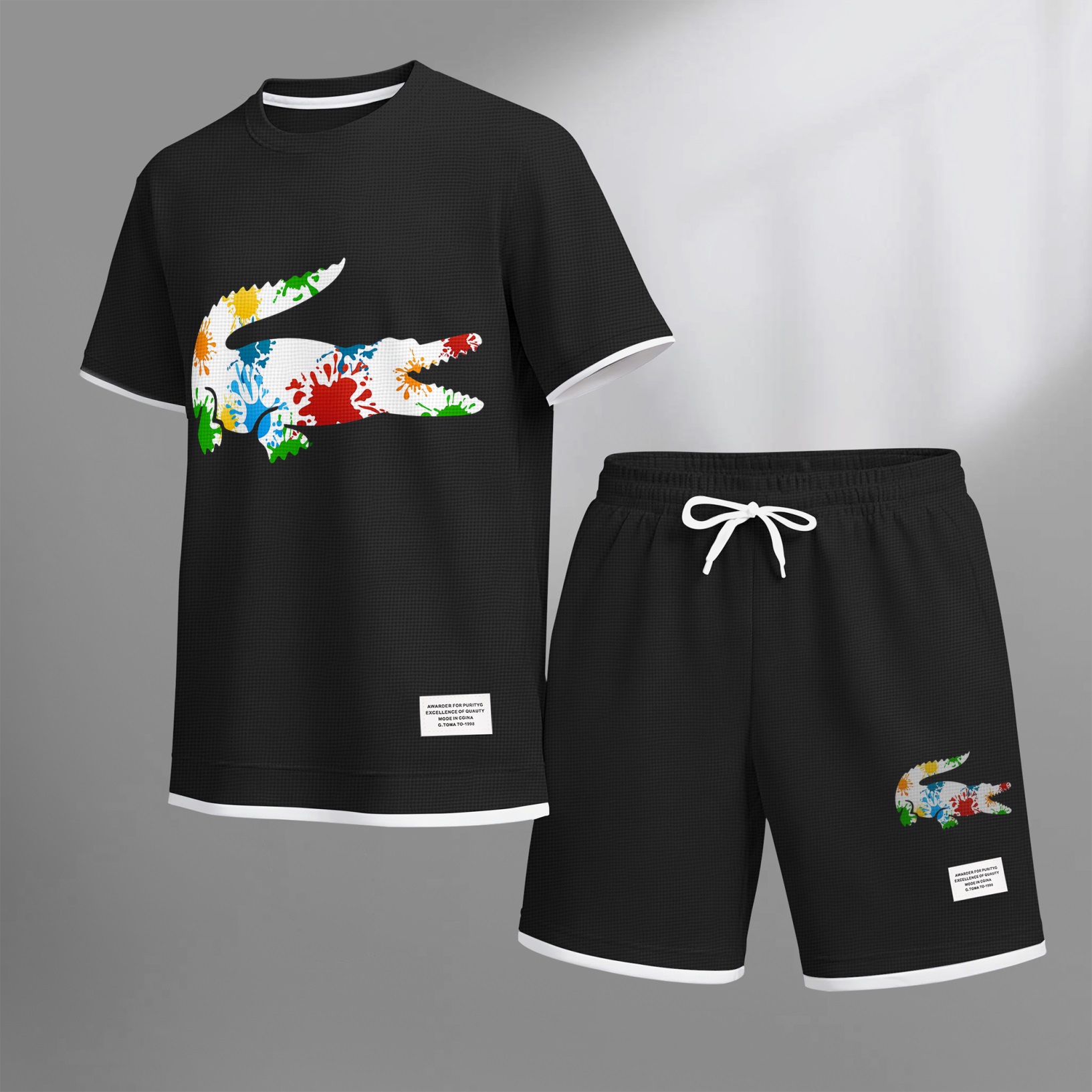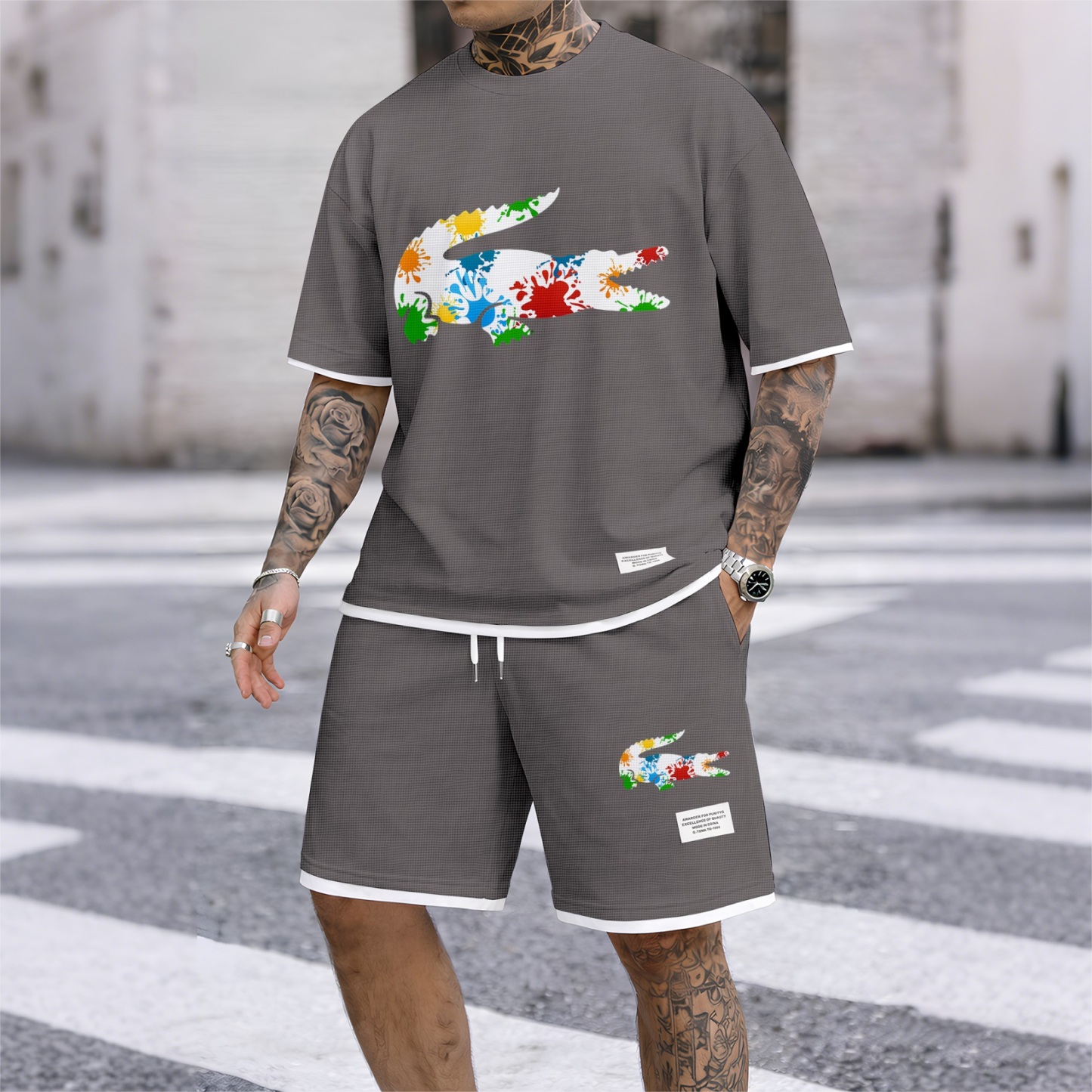 Men's Luxury Waffle-Knit Short-Sleeve Shirt & Shorts Set 17