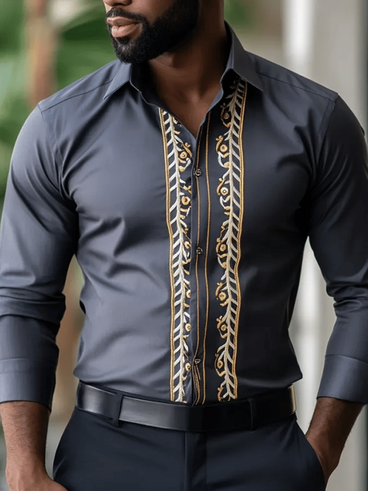 Men's Purple Mardi Gras Theme Luxury Long Sleeve Shirt