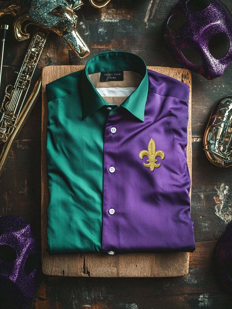 Men's Purple Mardi Gras Theme Luxury Long Sleeve Shirt