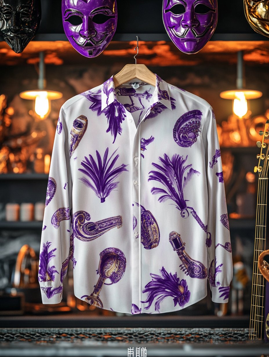 Men's Purple Mardi Gras Theme Luxury Long Sleeve Shirt