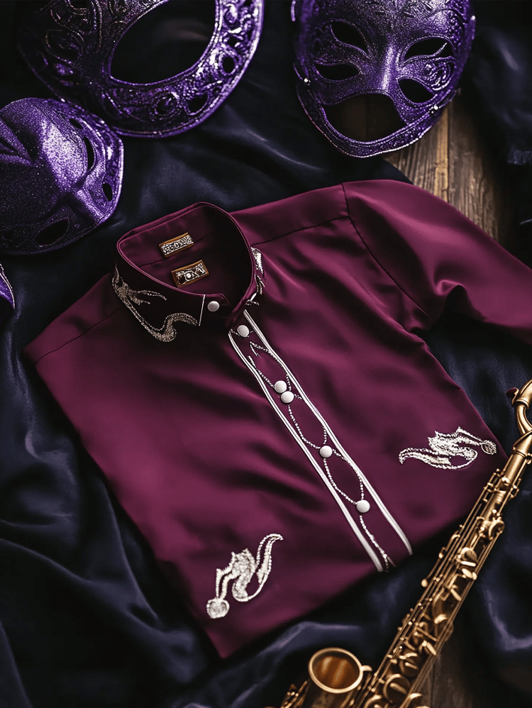Men's Purple Mardi Gras Theme Luxury Long Sleeve Shirt