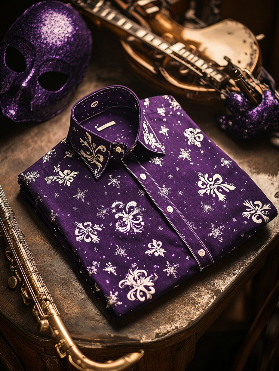 Men's Purple Mardi Gras Theme Luxury Long Sleeve Shirt