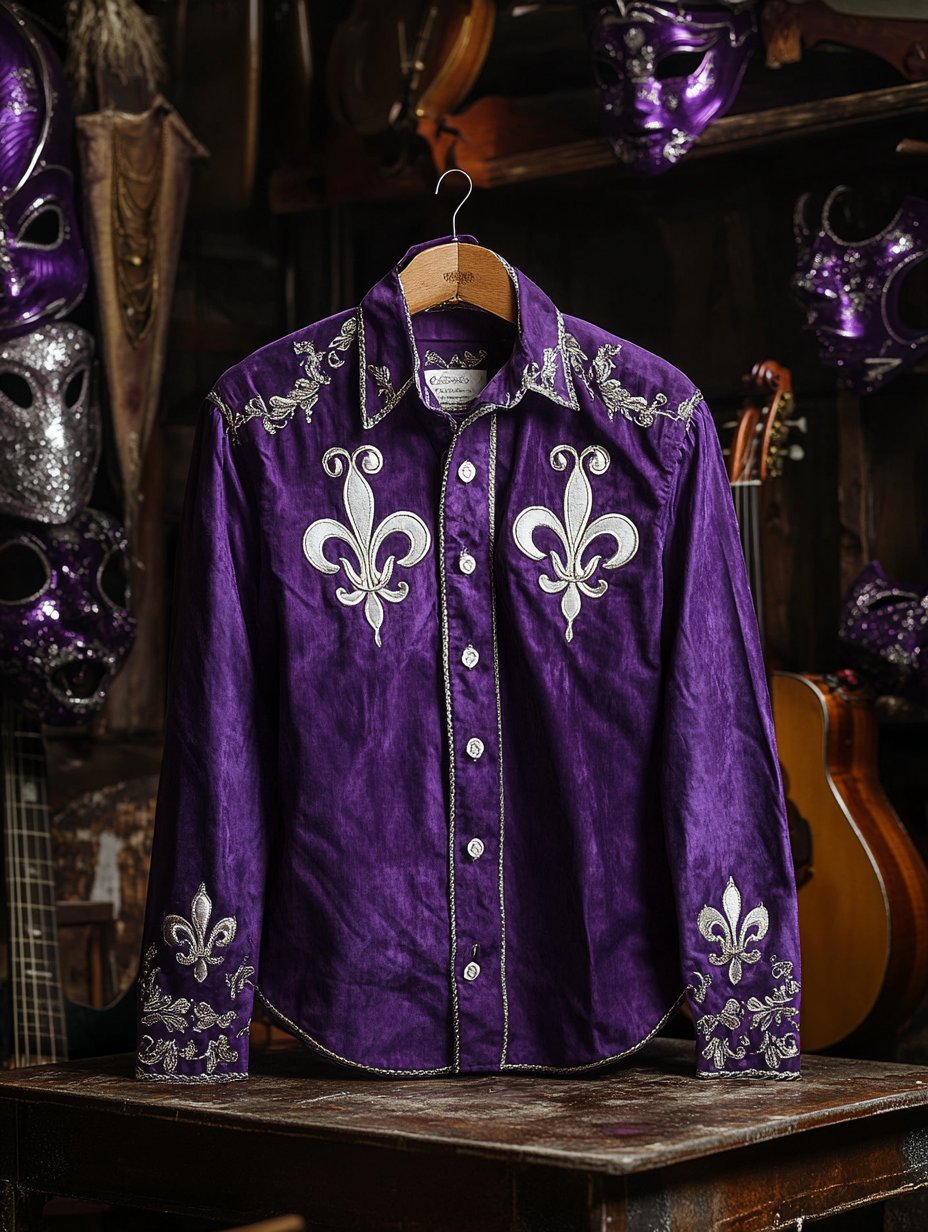 Men's Purple Mardi Gras Theme Luxury Long Sleeve Shirt