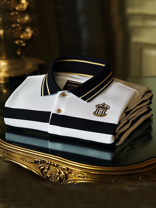 Men's Retro Business Stripe Print Long Sleeve Polo Shirt