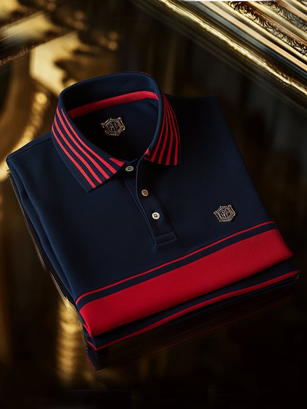 Men's Retro Business Stripe Print Long Sleeve Polo Shirt