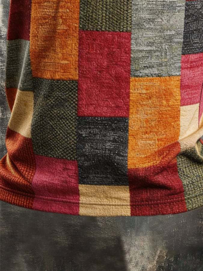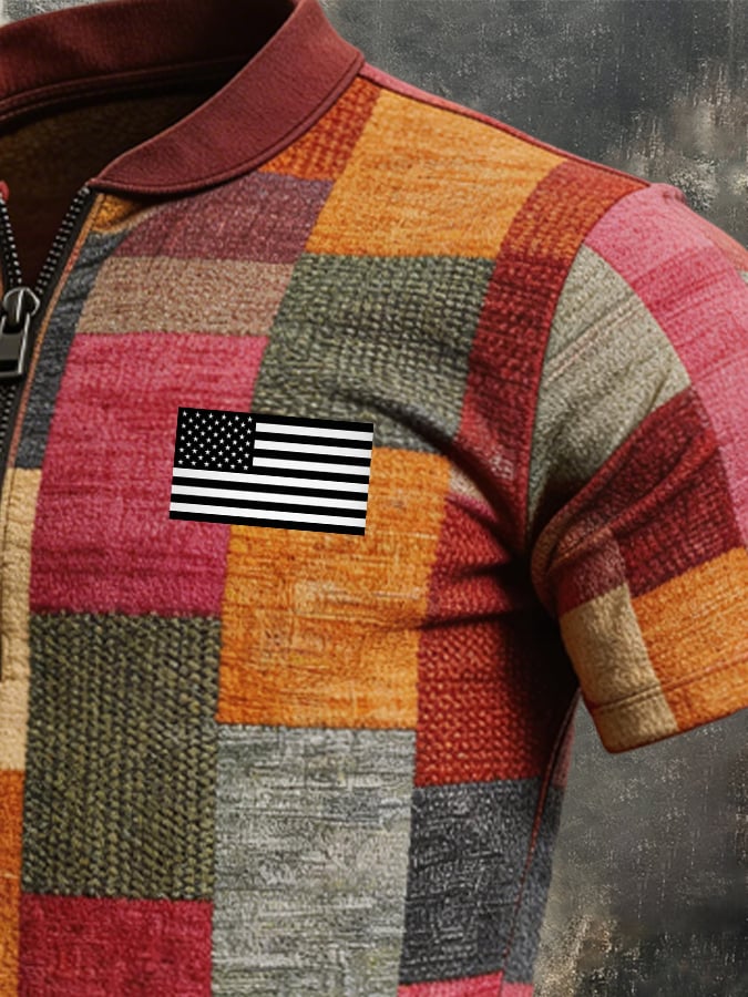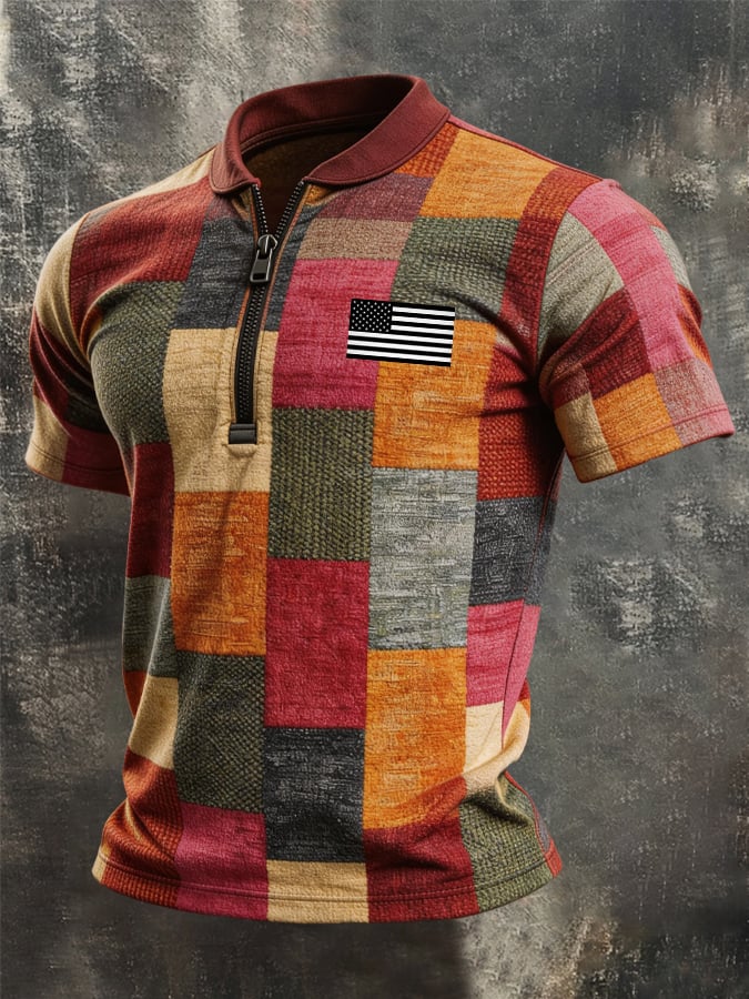Men's Retro Color-Block Zip-Up T-Shirt