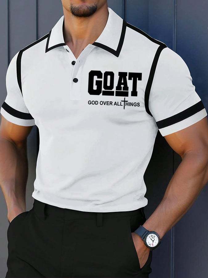 Men's Retro Faith “Goat God Over All Things” Casual Printed Polo Shirt