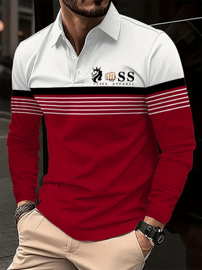 Men's Retro Letter Design Business Long Sleeve Polo Shirt