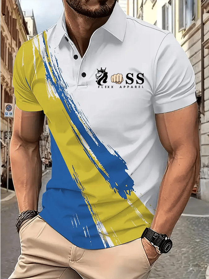 Men's Retro Letter Design Printed Casual Polo Shirt