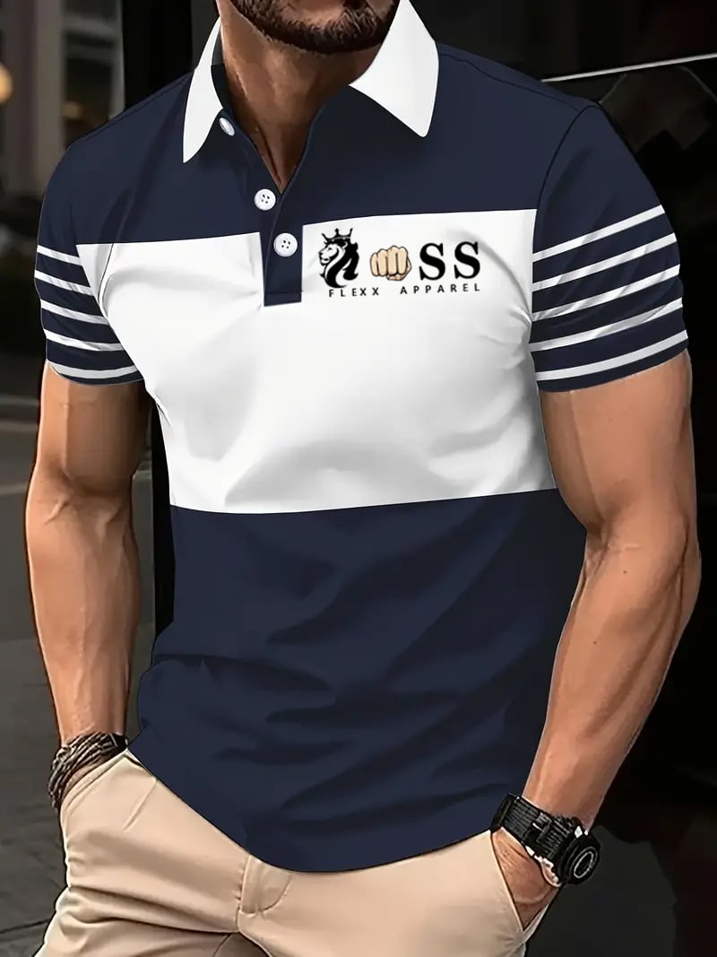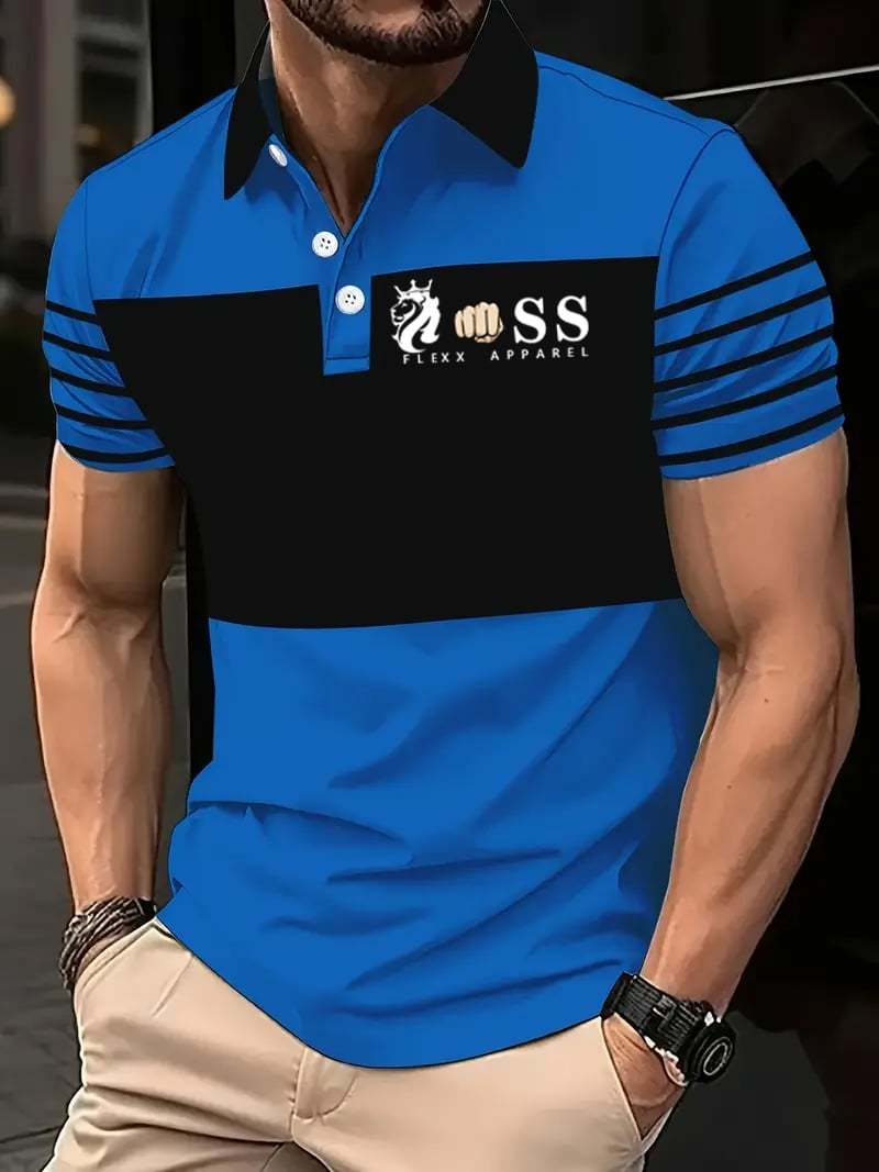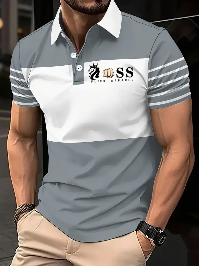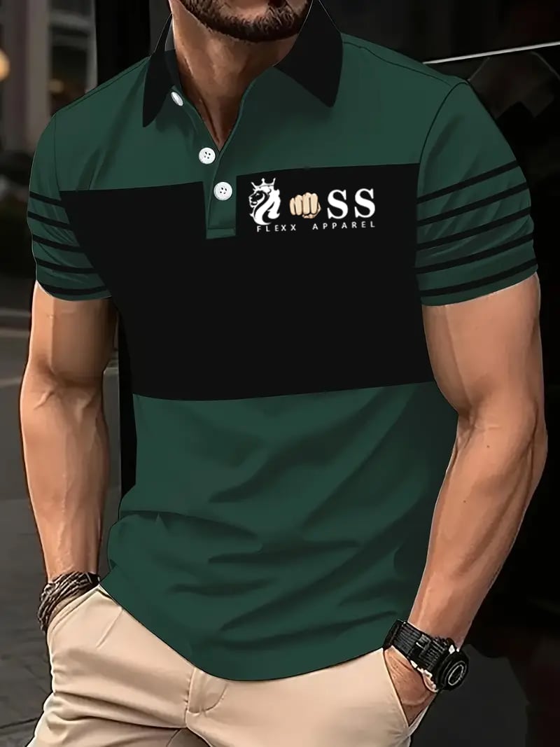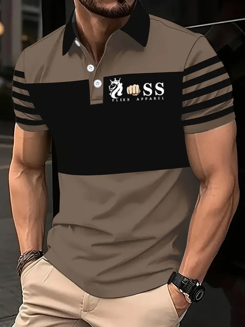 Men's Retro Letter Design Printed Casual Polo Shirt