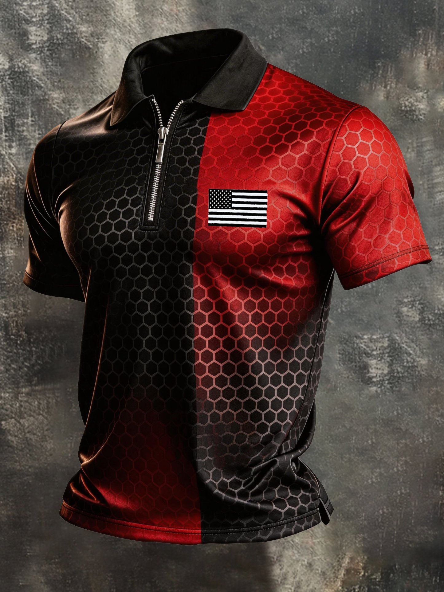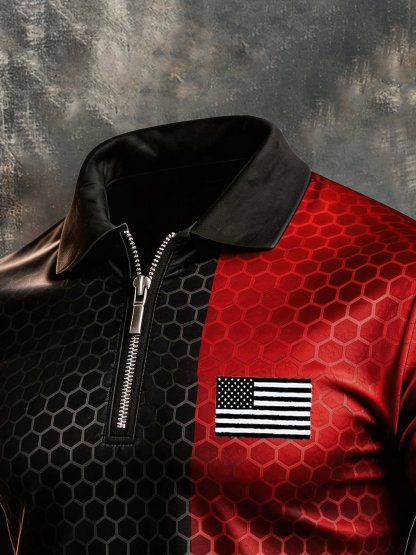Men's Retro "Patriot" Color-Block Short-Sleeve Half-Zip Polo Shirt