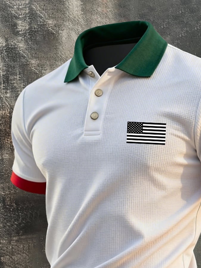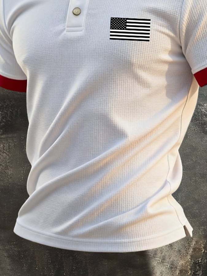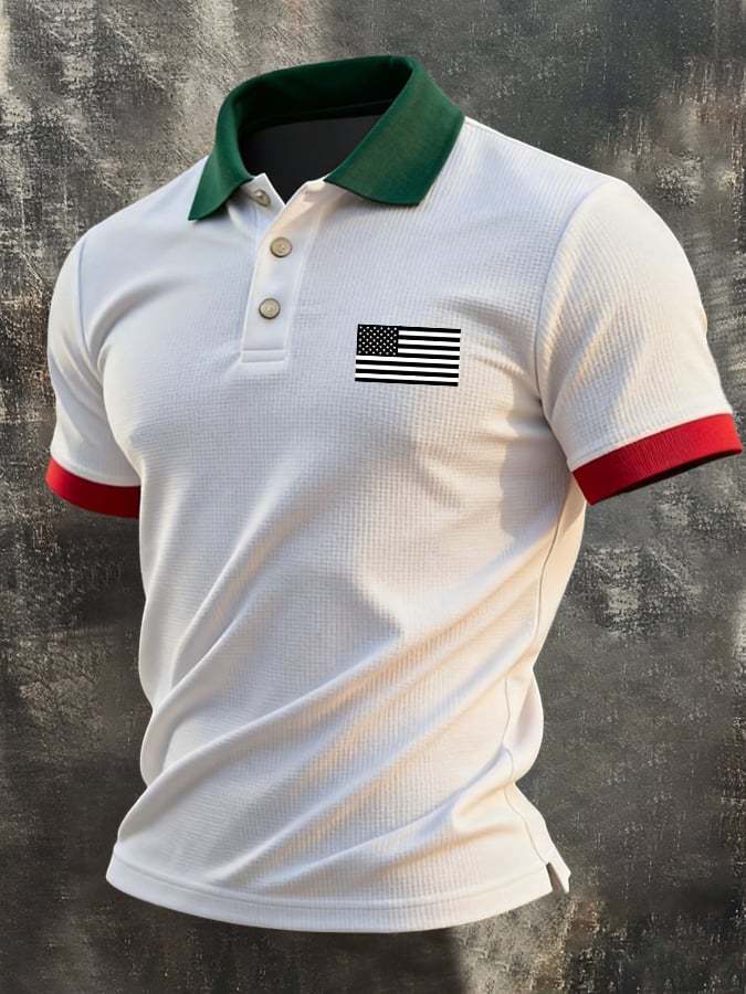 Men'S Retro "Patriot" Color-Block Waffle-Knit Short-Sleeve Polo Shirt