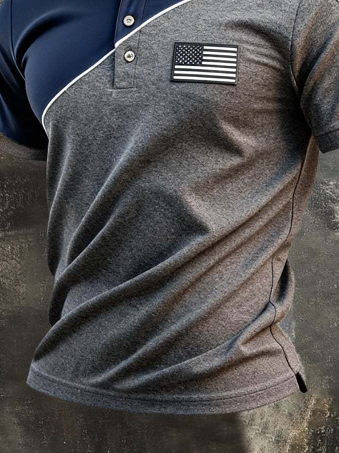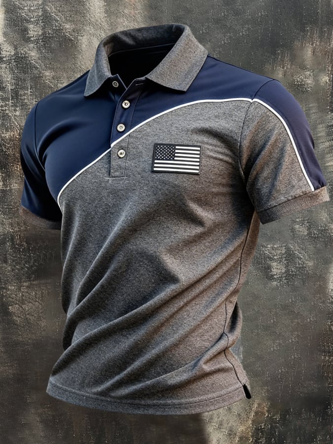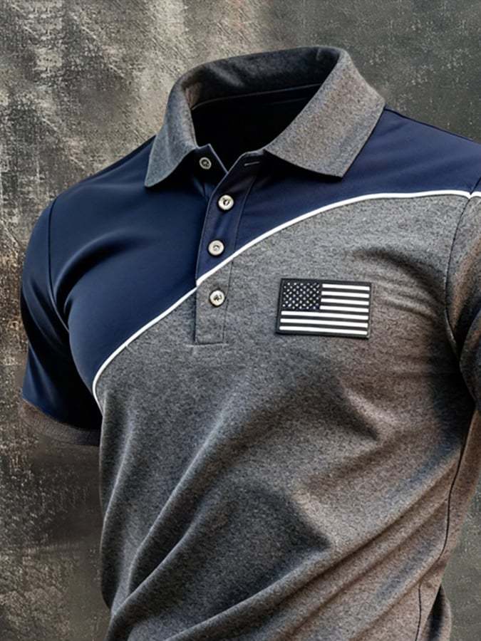 Men's Retro Patriotic Color-Block Short-Sleeve Polo Shirt