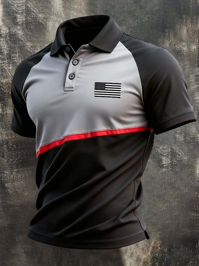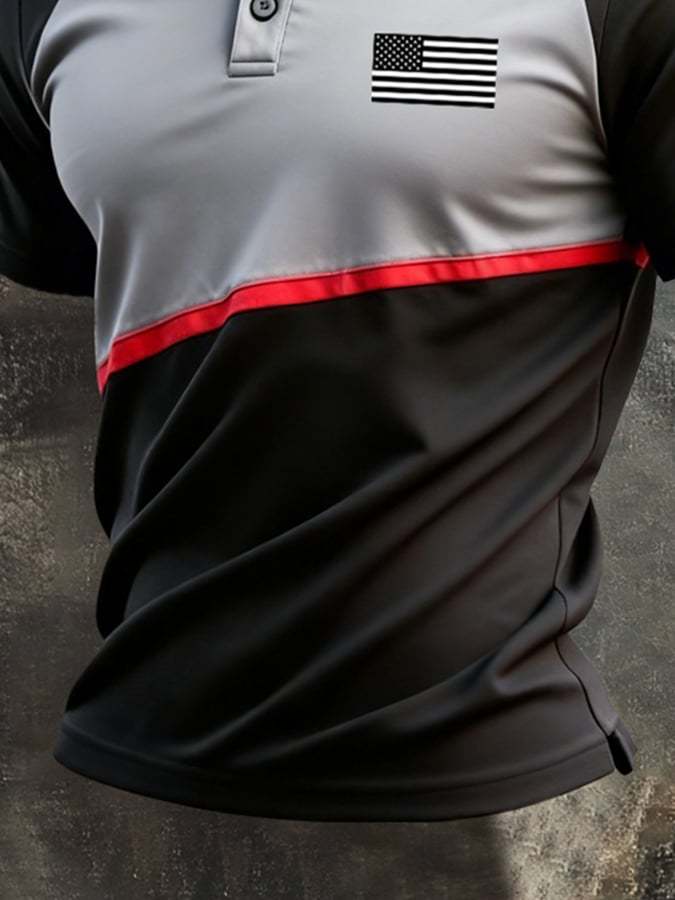 Men's Retro Patriotic Color-Block Short-Sleeve Polo Shirt