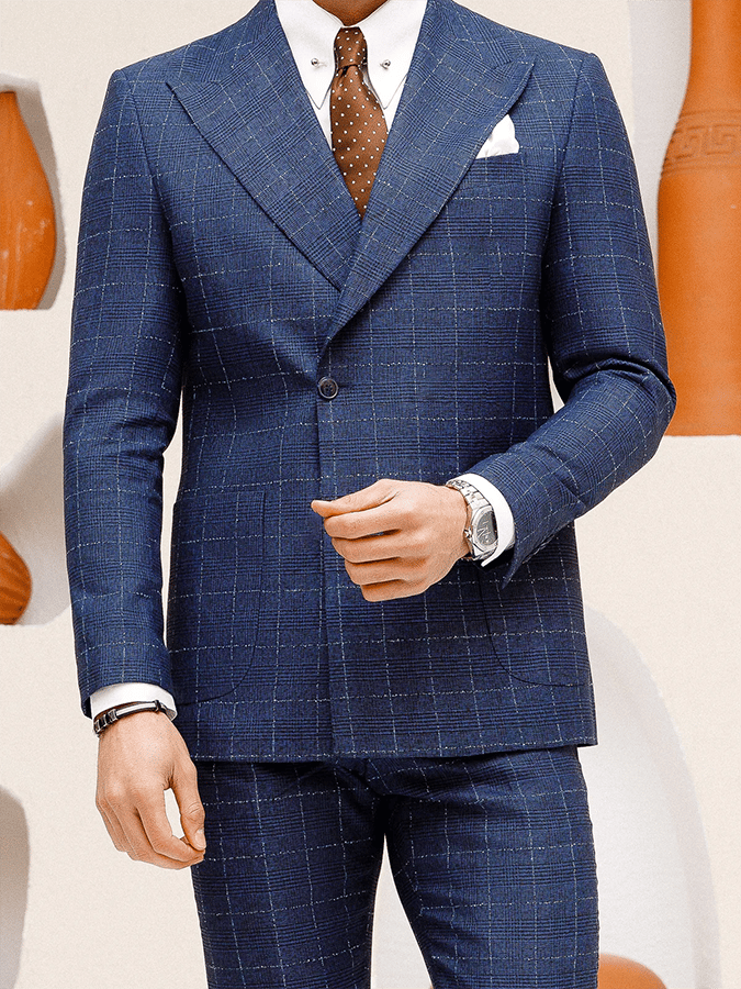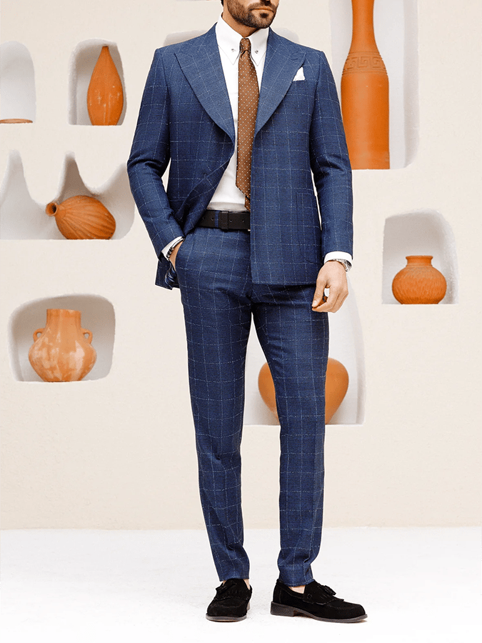 Men's Retro Single Breasted Plaid Gentleman Business Suit Jacket