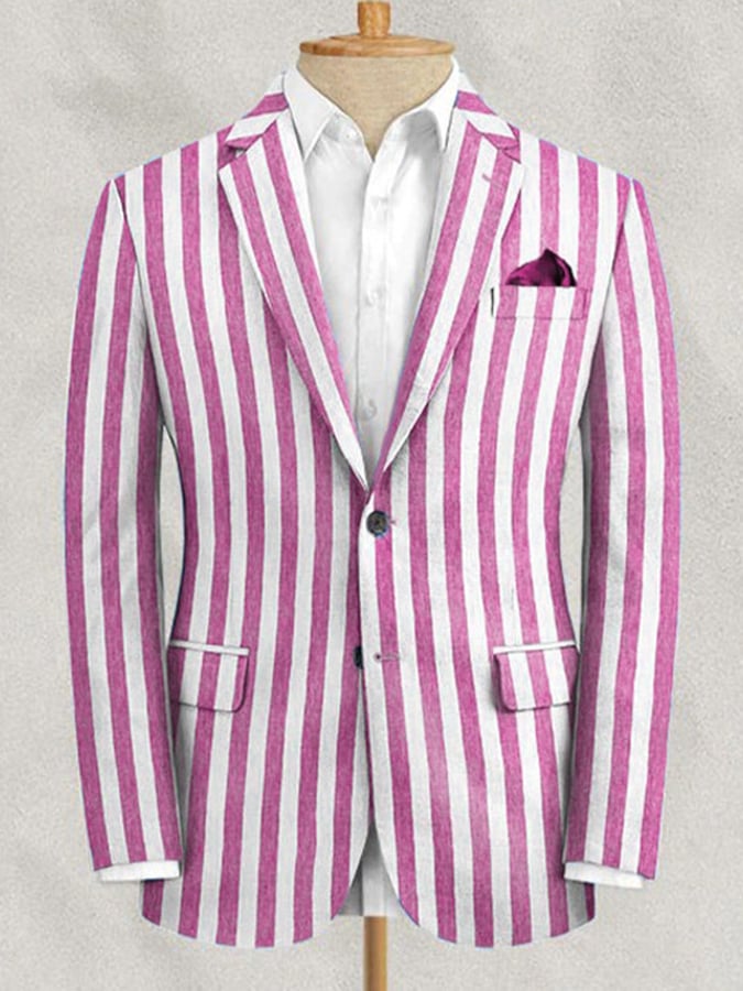 Men's Retro Single Breasted Striped Gentleman Business Suit Jacket