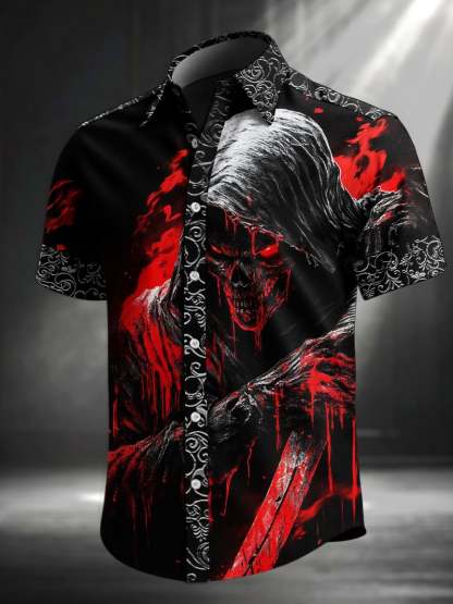 Men's Retro Skull Print Lapel Short Sleeve Shirt