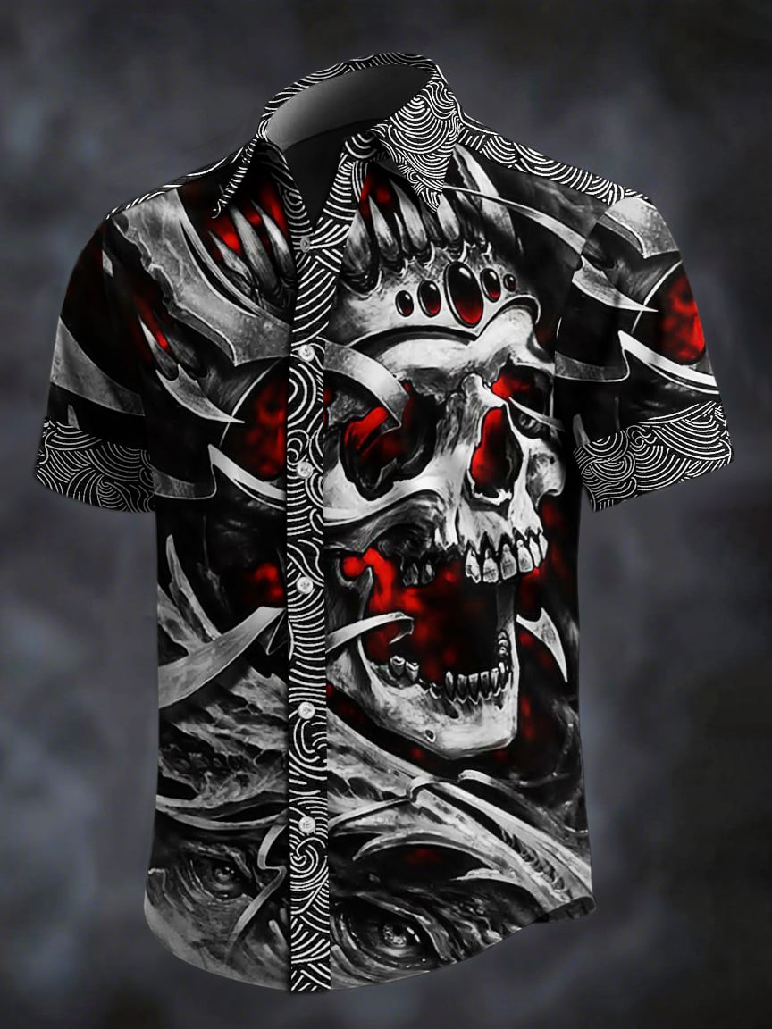 Men's Retro Skull Print Lapel Short Sleeve Shirt