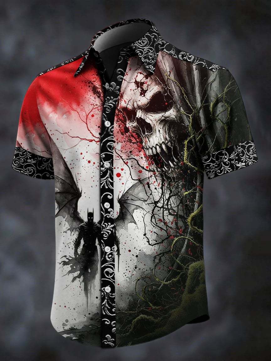 Men's Retro Skull Print Lapel Short Sleeve Shirt