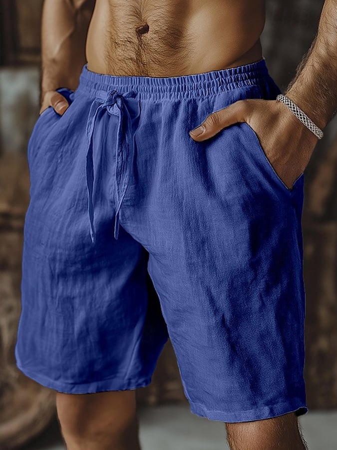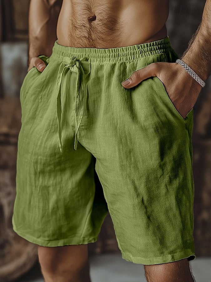 Men's Retro Solid Color Design Elastic Waist Lace-Up Casual Pants
