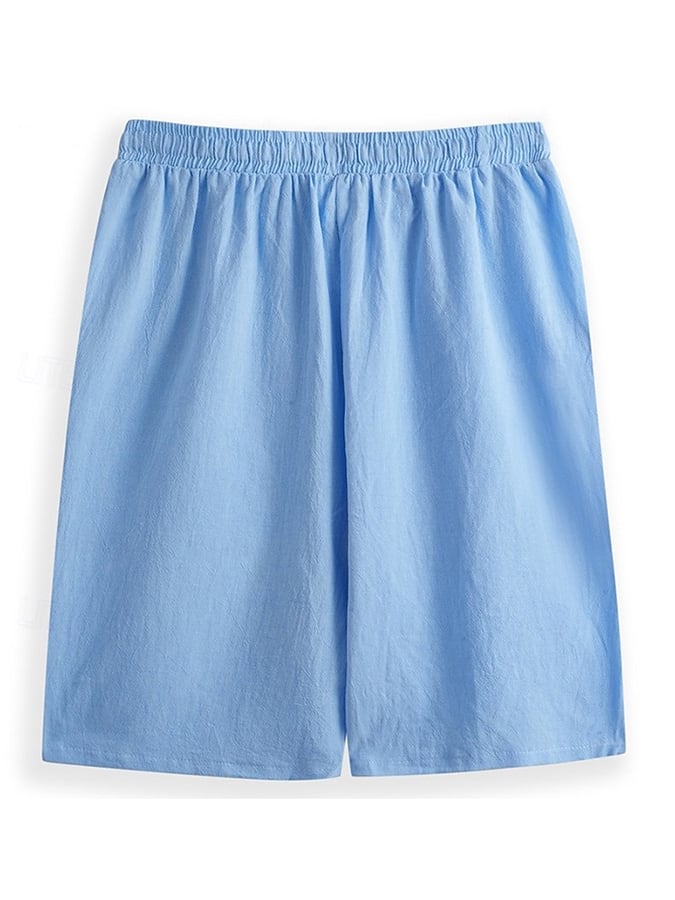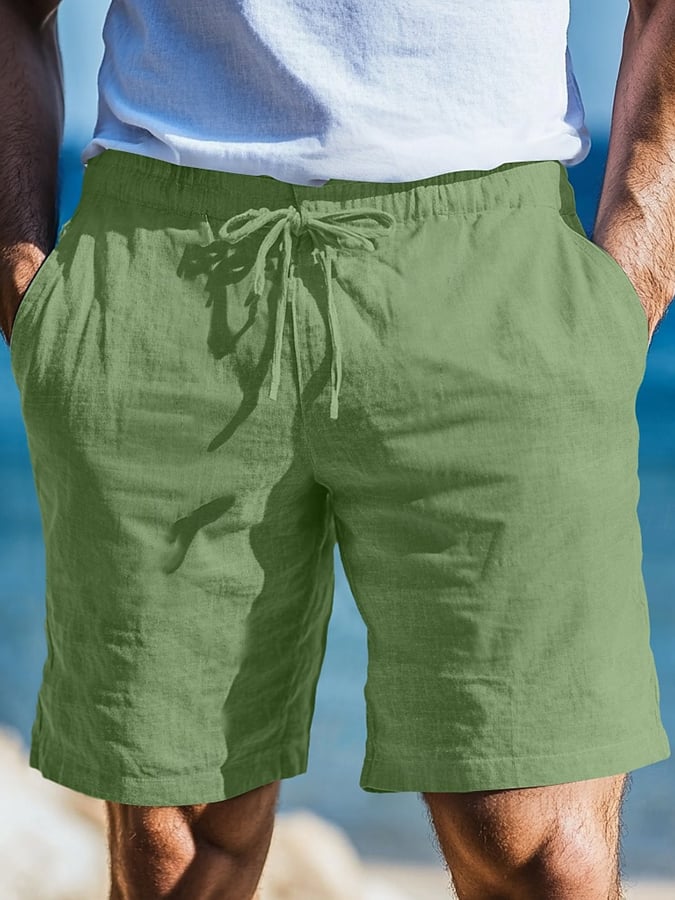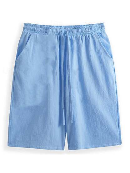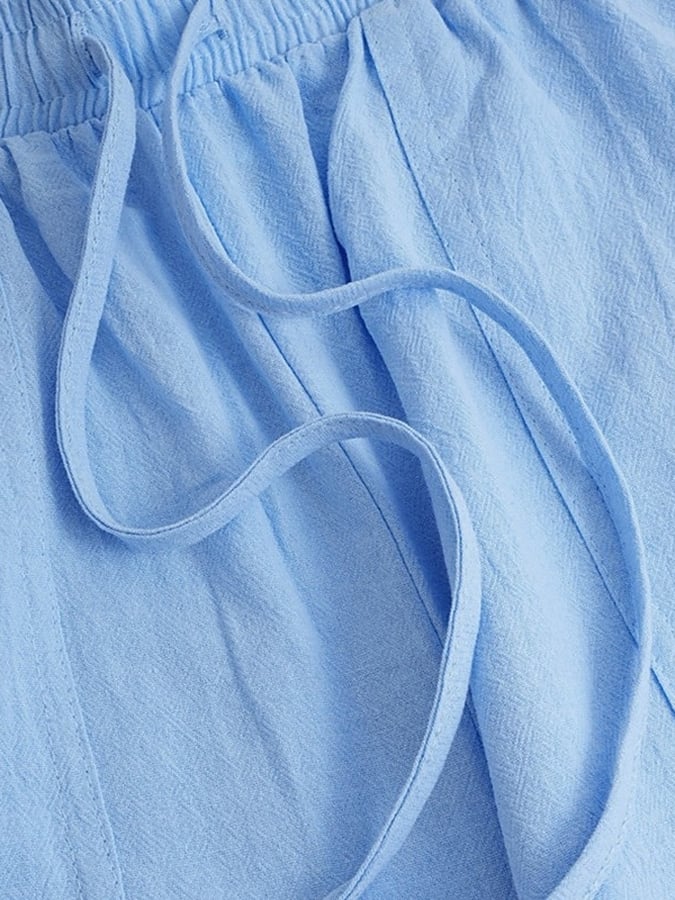 Men's Retro Solid Color Design Elastic Waist Lace-Up Casual Pants