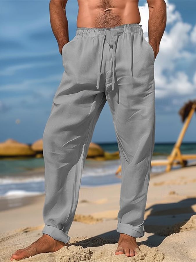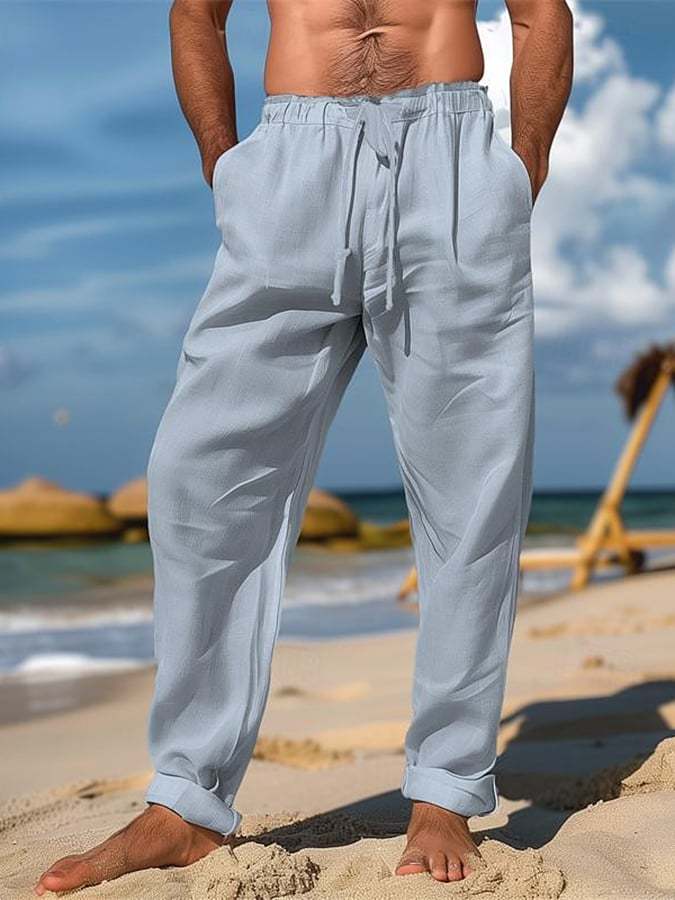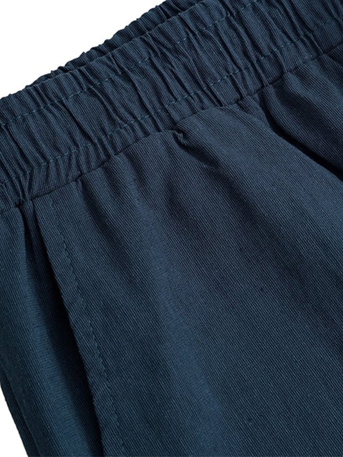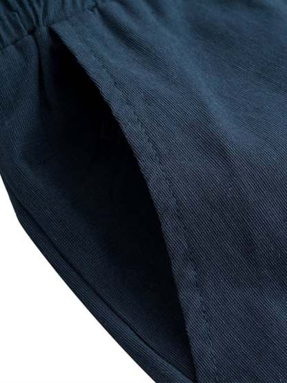 Men's Retro Solid Color Design Elastic Waist Lace-Up Casual Pants