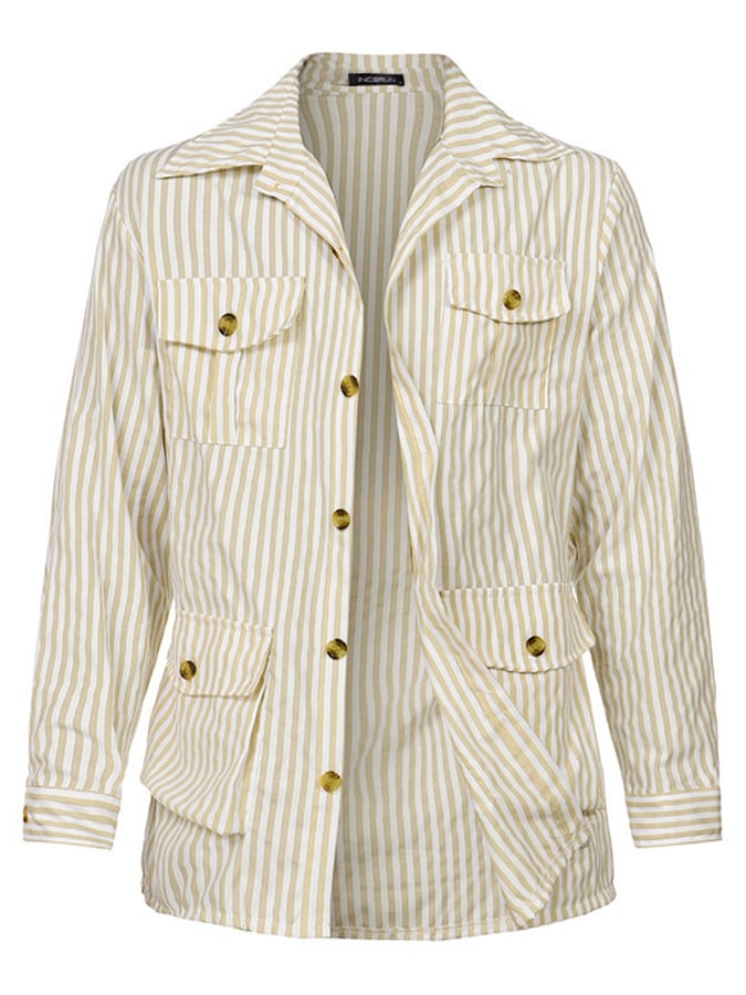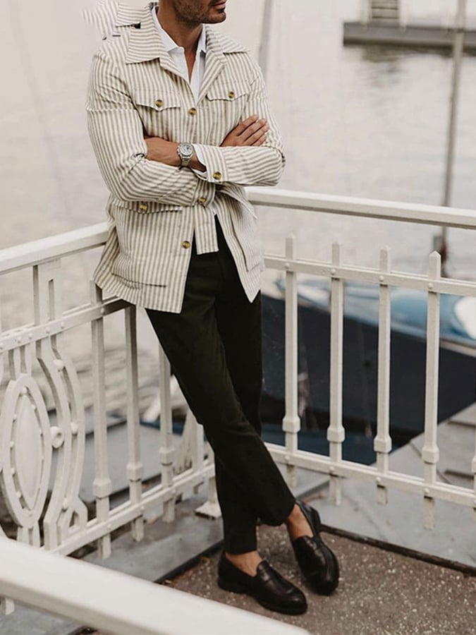Men's Retro Striped Multi-Pocket Design Casual Suit