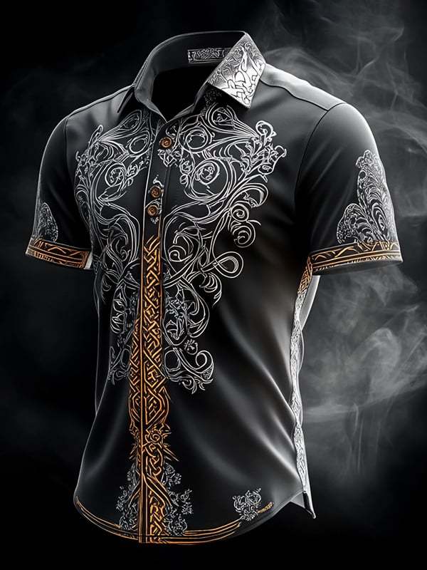 Men's Retro Viking Graphic Short Sleeve Shirt