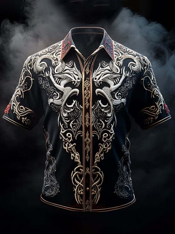Men's Retro Viking Graphic Short Sleeve Shirt