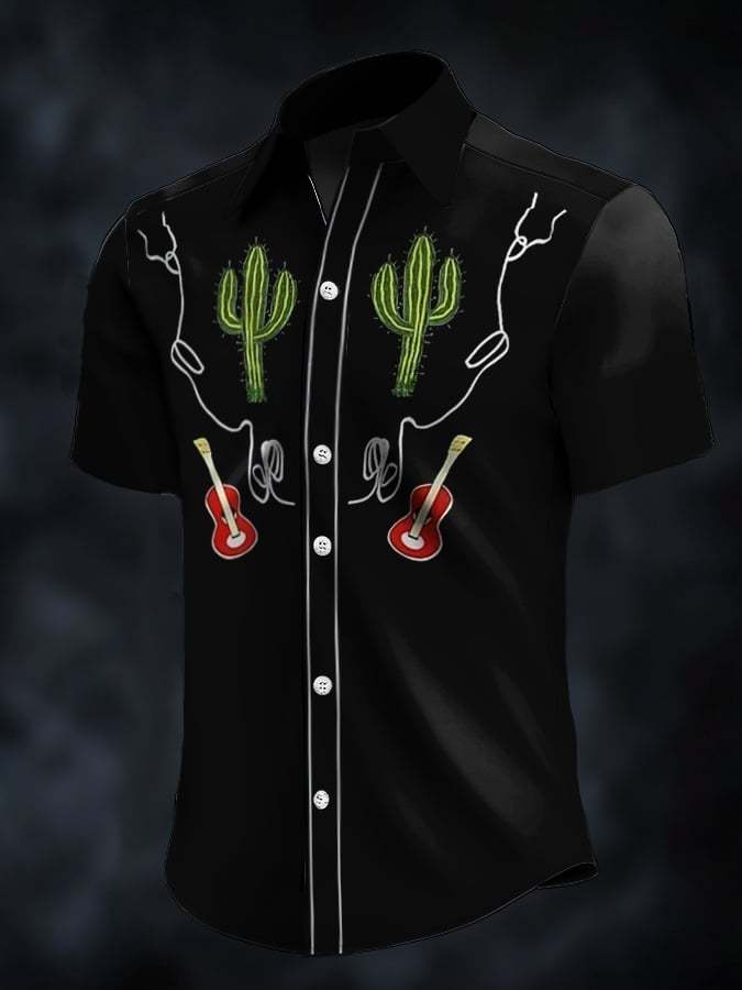Men's Retro Western Contrast Print Short Sleeve Casual Shirt