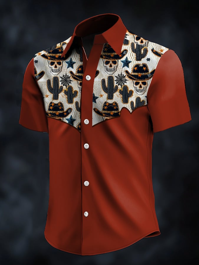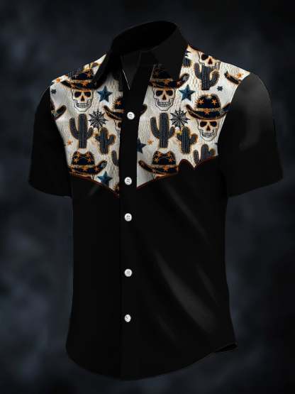 Men's Retro Western Contrast Print Short Sleeve Casual Shirt