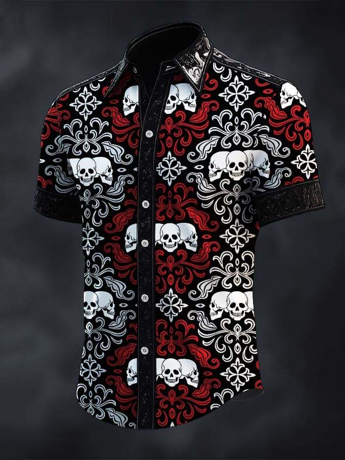Men's Retro Western Gothic Skull Print Short Sleeve Shirt