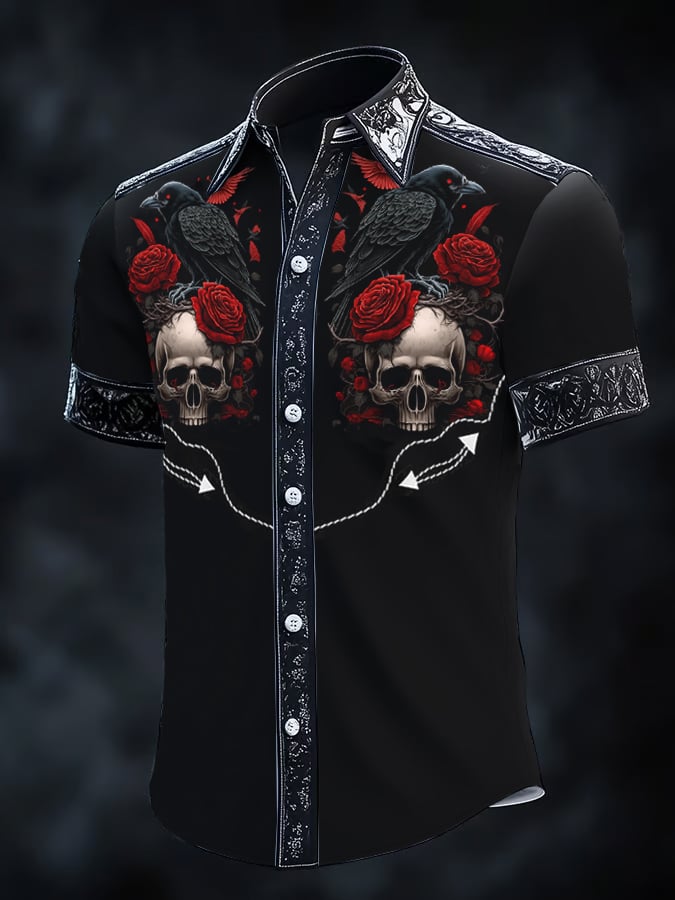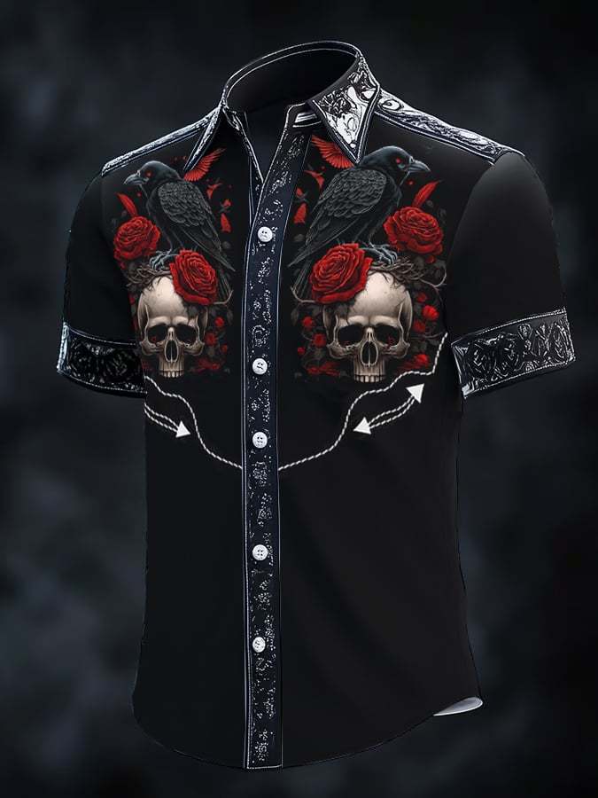Men's Retro Western Print Short Sleeve Shirt