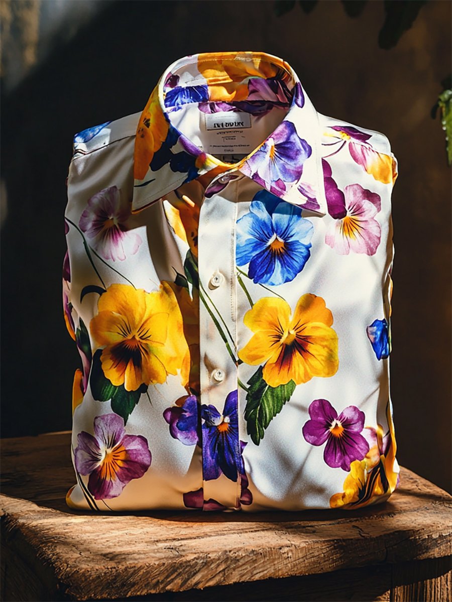 Men's Satin Luxe Hawaiian Print Short Sleeve Button Shirt