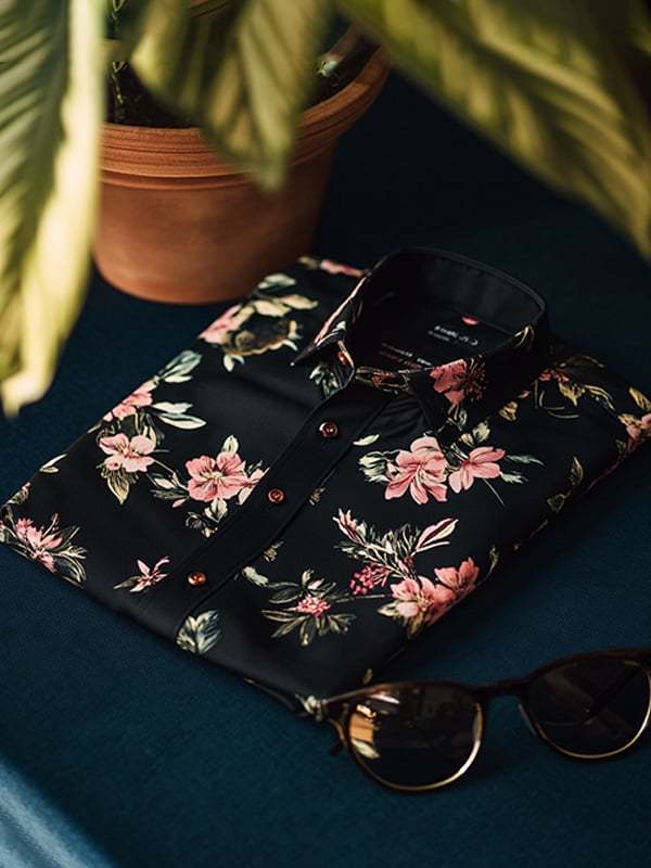 Men's Satin Luxury Vintage Floral Short Sleeve Shirt