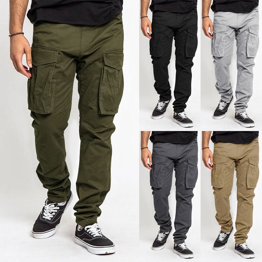 Men's Solid Color Multi Pocket Casual Cargo Pants