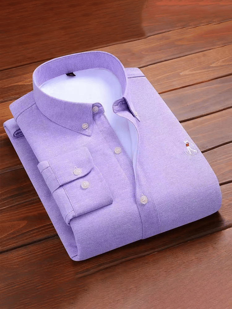 Men's Thick Cotton Embroidered Long Sleeve Business Shirt