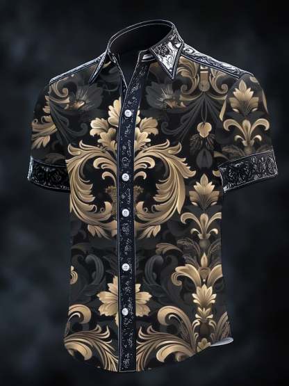 Men's Vintage Dark Baroque Print Short Sleeve Shirt