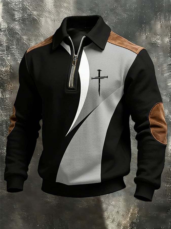 Men's vintage Faith Design Print Casual Zipper Sweatshirt-Fast Shipping