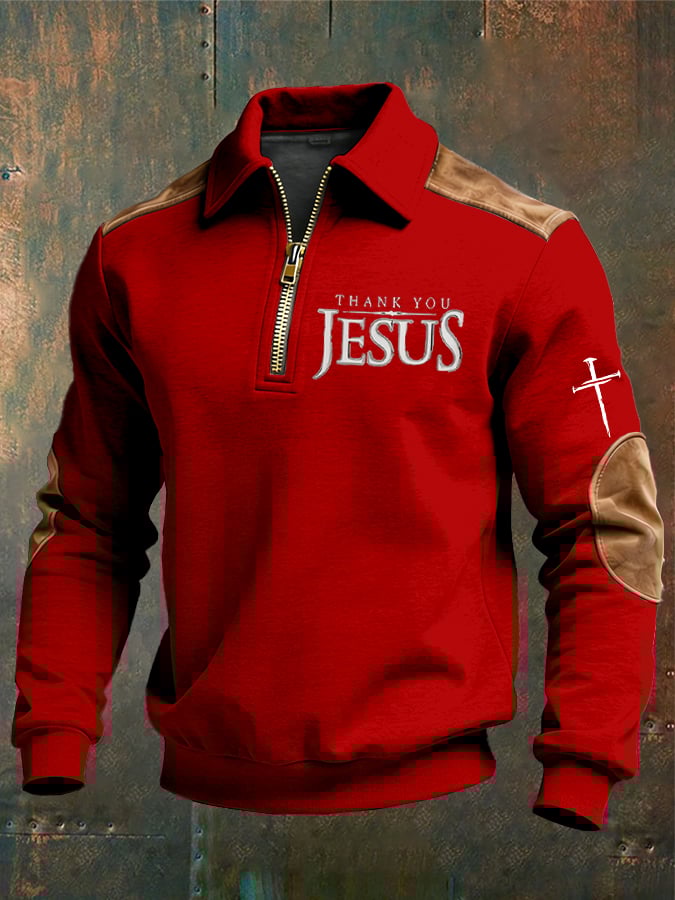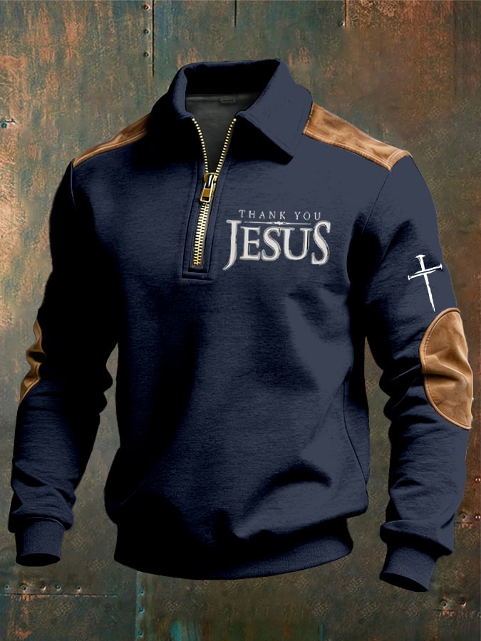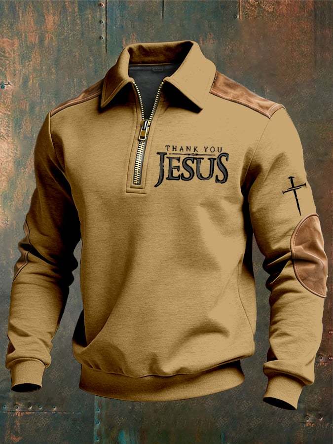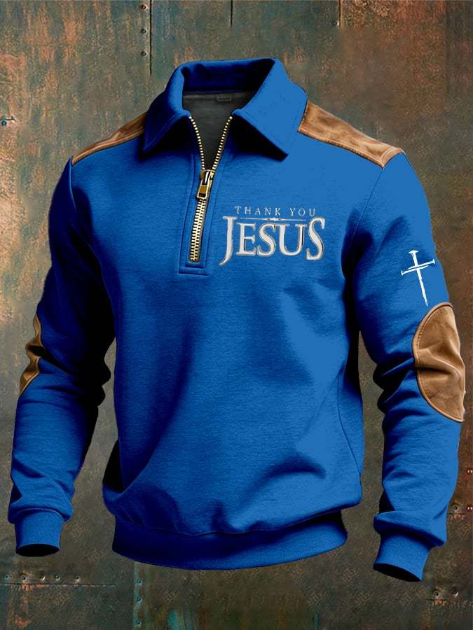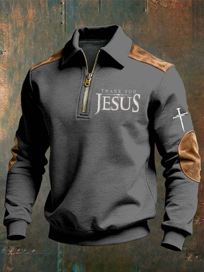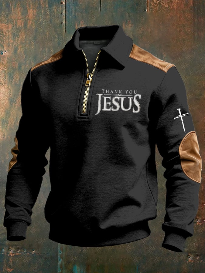 Men's vintage Faith “Thank You Jesus” Design Print Casual Zipper Sweatshirt-Fast Shipping