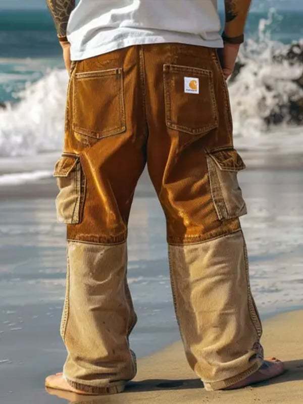 Men's Vintage Waffle Knitted Outdoor Multi-pocket Cargo Pants Trousers
