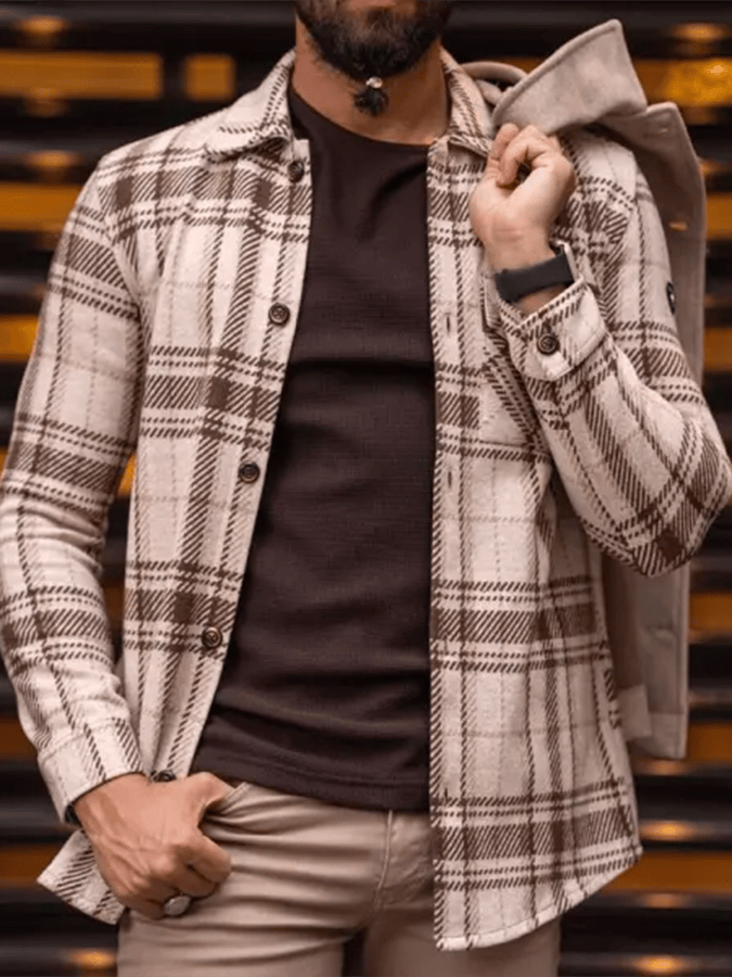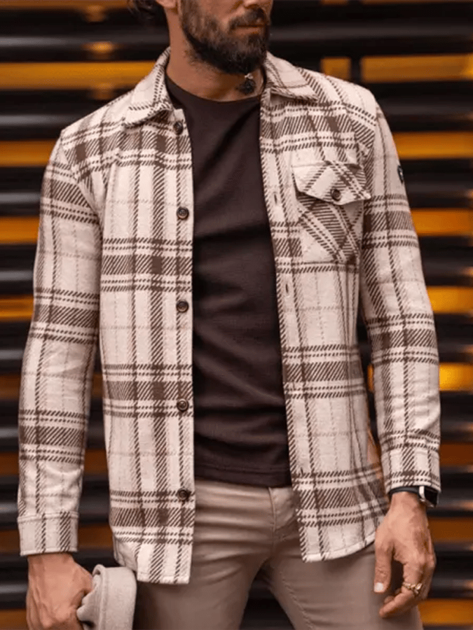 Men's Vintage Western Plaid Long Sleeve Jacket Shirt